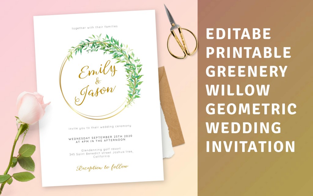 Wedding Invitation Invite Card Wreath Design With Willow Willow Tree Wedding Invitations