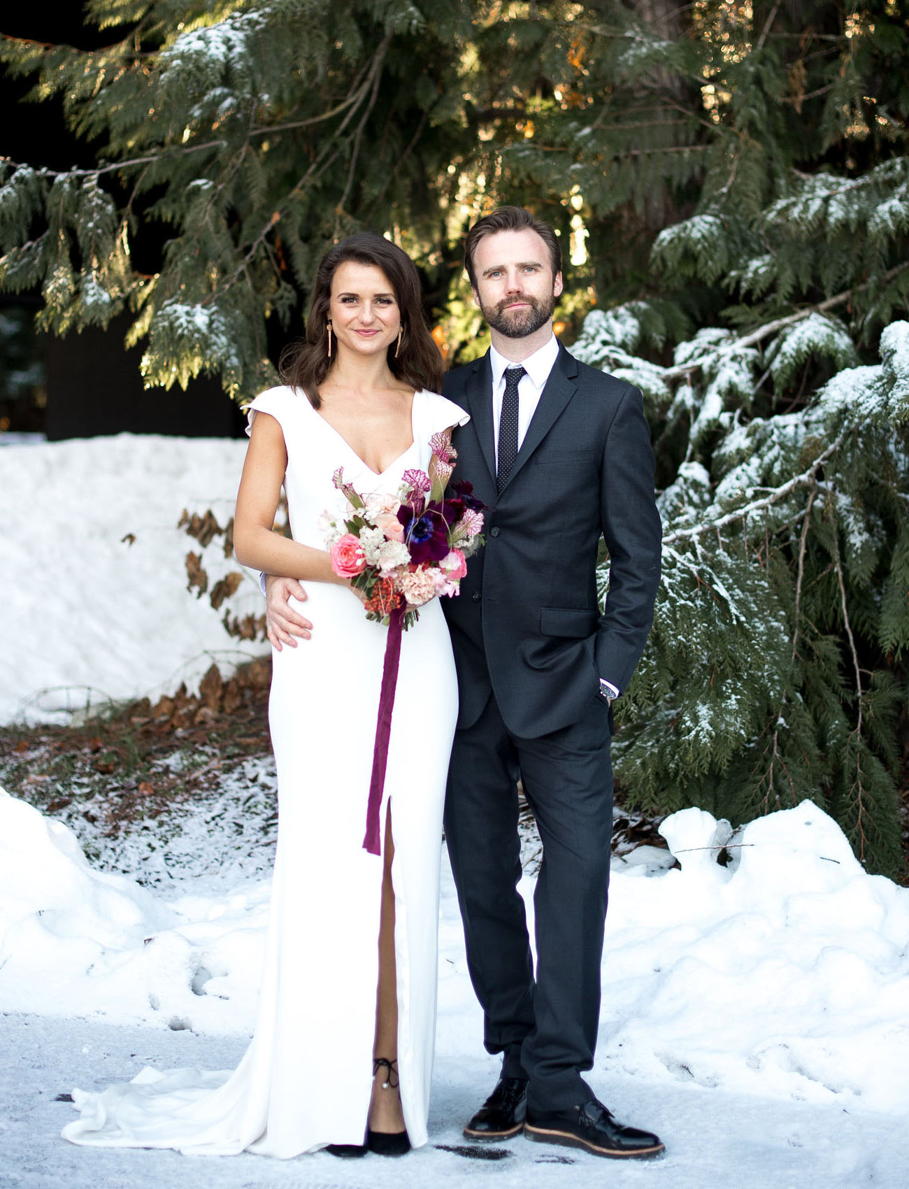 Minimalistic Winter Elopement At A Modern Art Museum Green Winter Elopement Wedding Dress