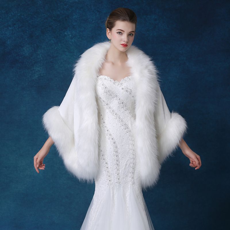 Ivory With Black Faux Fur Bridal Wrap Wedding Fur Shrug White Winter Shawls For Wedding Dresses