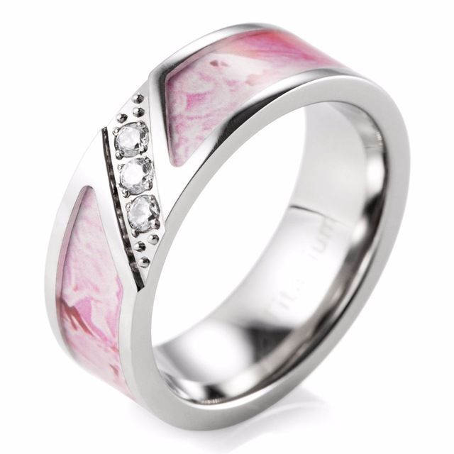 Shardon Ladies Camo Engagement Ring Pink Real Tree Titanium Women Camo Wedding Rings