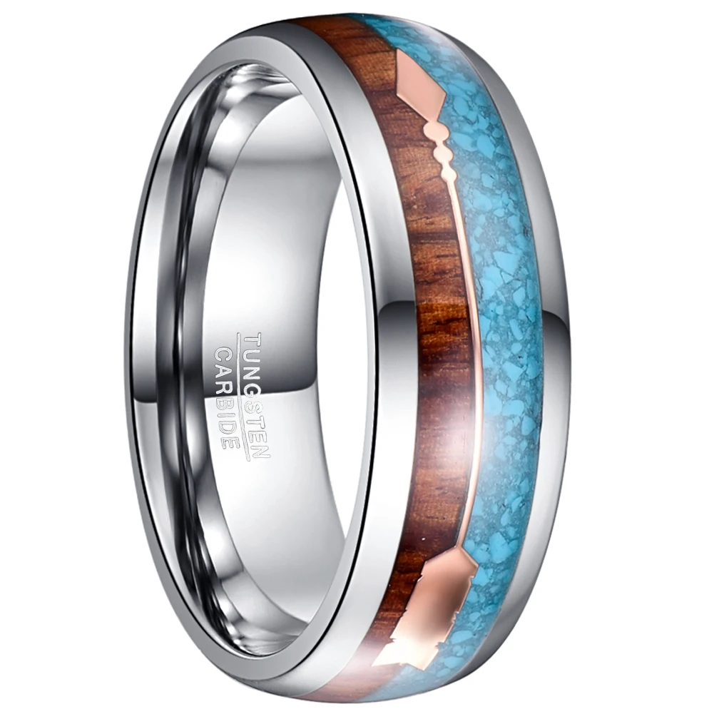 9mm Silver Color Tungsten Wood Rings For Men Jewelry Blue Opal Wood And Silver Wedding Rings
