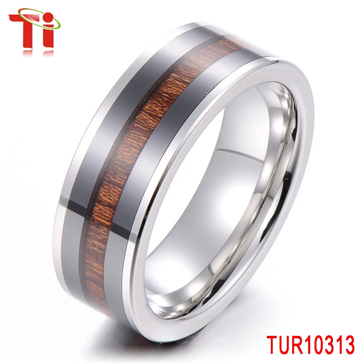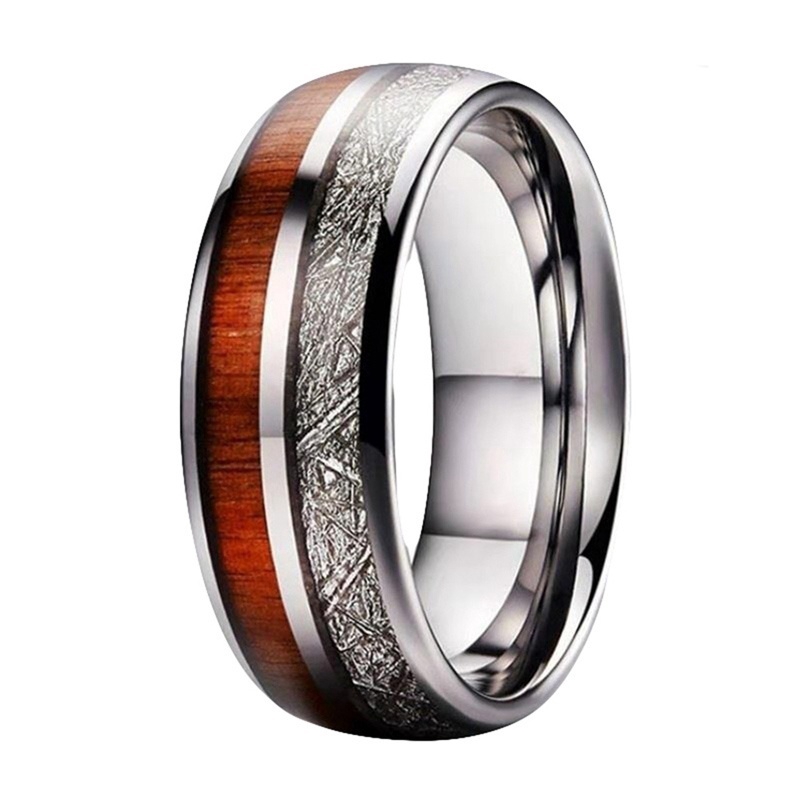 New Lover Rings Men S Koa Wood Inlay Titanium Steel Ring Women S Wood And Silver Wedding Rings