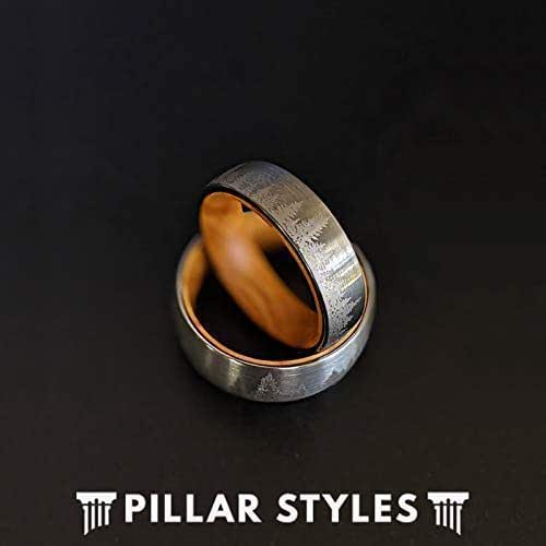 Amazon Com Koa Wood Ring Forest Etched Wood Inlay Ring 6mm Silver Wooden Wedding Rings For Men
