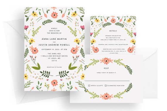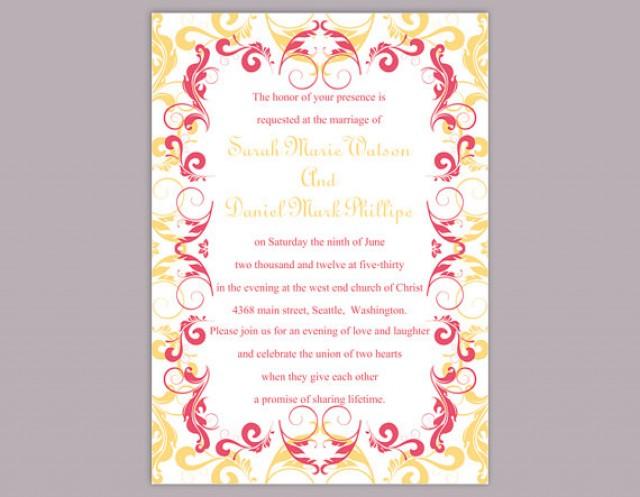 Printed Pink And Yellow Floral Wedding Invitations Coral Etsy Yellow And Pink Wedding Invitations