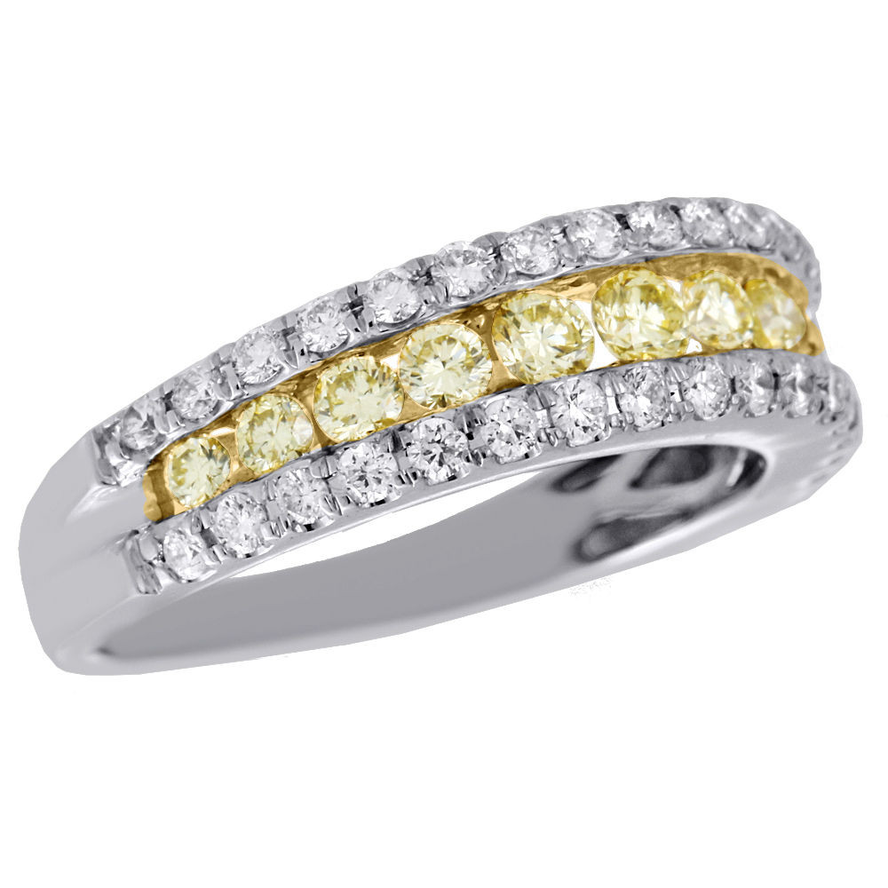 Princess Cut White Yellow Diamond Wedding Band 18k White Gold 0 60ct U1307 Yellow And White Diamond Wedding Band