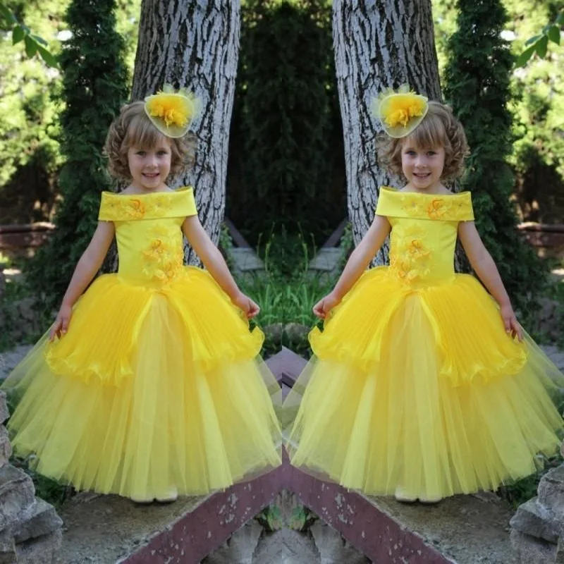 2020 Yellow Peplum Butterfly Appliques Flower Girl Dresses For Yellow Dresses For Wedding
