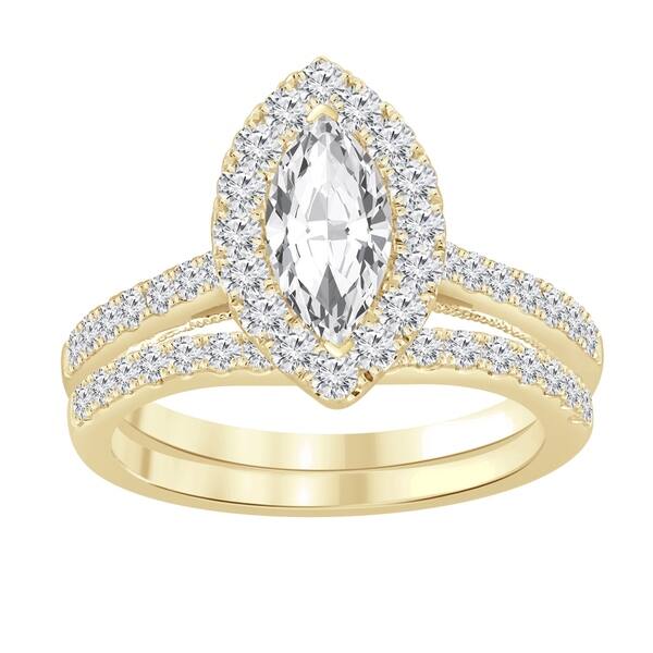 Shop Auriya 1 1 2ctw Marquise Halo Diamond Engagement Ring Set 14k Gold On Sale Overstock 27880158 Yellow Gold Marquise Wedding Ring Sets