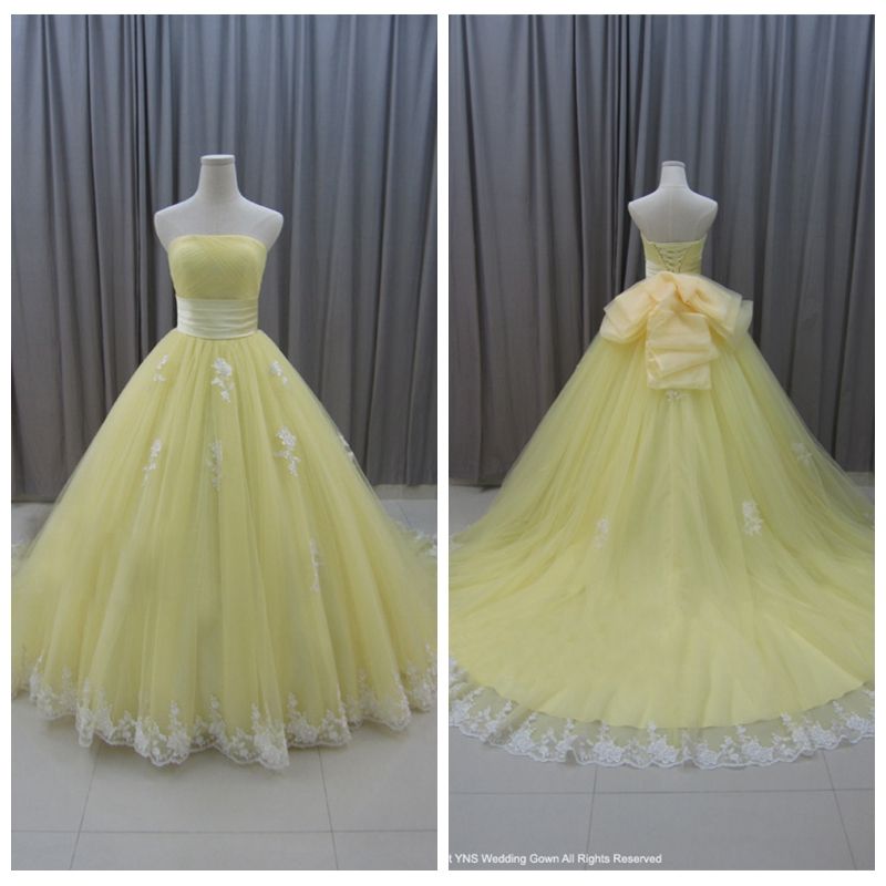 Kapokbanyan Real Photo Light Yellow Lace Ball Gown Short Wedding Yellow Wedding Dress Lace