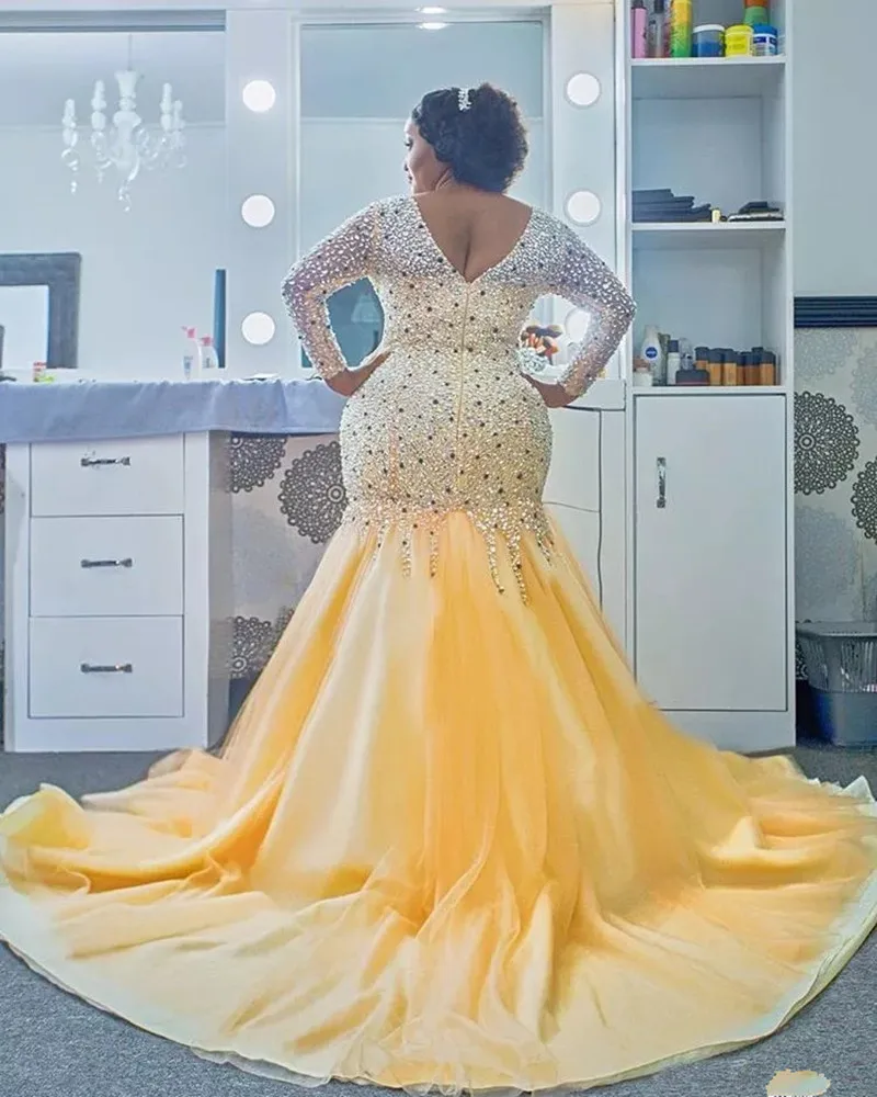 New Arrival Plus Size Luxury Wedding Dress African Heavy Beading Yellow Wedding Dress Plus Size