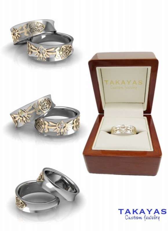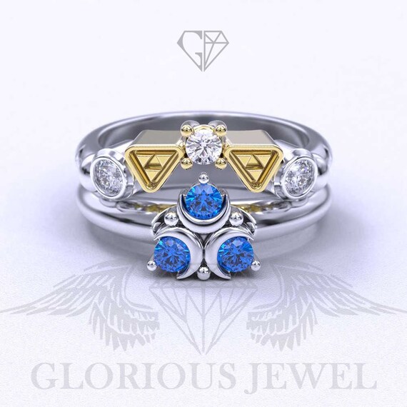 Legend Of Zelda Engagement Ring In White Gold With Moissanite And Zelda Wedding Rings